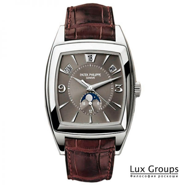 Patek Philippe Complication — це оригінальний годинник від бренду Patek Philippe референс 5135G-010 створений з урахуванням кращих традицій годинникового мистецтва, у яких Тип калібру механіка з автопідзаводом, Діаметр, мм 51, Матеріал корпусу біле золото, буде ідеальним вибором для тих, хто цінує точність, стиль та якість, підтверджену часом, стане практичним інструментом та важливим елементом вашого іміджу Patek Philippe Complication мають Браслет шкіра алігатора, Водонепроникність (м) 30, Запас ходу 45 годин, представлені в інтернет-магазині Luxgroups за найкращою ціною з можливістю купити в Україні. Кваліфікована консультація по моделі годинника Patek Philippe Complication 5135G-010.