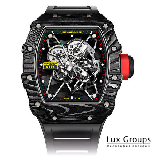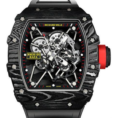 Річард Мілле Рафаель Надаль — це оригінальний годинник від бренду Richard Mille референс RM 35-01 створений з урахуванням кращих традицій годинникового мистецтва, у яких Тип калібру механіка з автопідзаводом, Діаметр, мм 50, Матеріал корпусу карбон, буде ідеальним вибором для тих, хто цінує точність, стиль та якість, підтверджену часом, стане практичним інструментом та важливим елементом вашого іміджу Річард Мілле Рафаель Надаль мають Водонепроникність (м) 50, Запас ходу 55 годин, представлені в інтернет-магазині Luxgroups за найкращою ціною з можливістю купити в Україні. Кваліфікована консультація по моделі годинника Річард Мілле Рафаель Надаль RM 35-01.