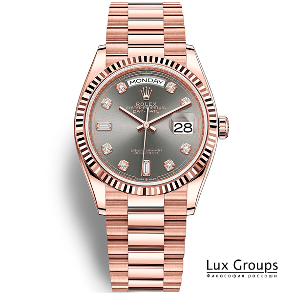 Rolex Day-Date 36 Everose President — це оригінальний годинник від бренду Rolex референс 128235-0050 створений з урахуванням кращих традицій годинникового мистецтва, у яких Тип калібру механіка з автопідзаводом, Діаметр, мм 36, Матеріал корпусу рожеве золото, буде ідеальним вибором для тих, хто цінує точність, стиль та якість, підтверджену часом, стане практичним інструментом та важливим елементом вашого іміджу Rolex Day-Date 36 Everose President мають Браслет розове золото, Водонепроникність (м) 100, Запас ходу 70 годин, представлені в інтернет-магазині Luxgroups за найкращою ціною з можливістю купити в Україні. Кваліфікована консультація по моделі годинника Rolex Day-Date 36 Everose President 128235-0050.