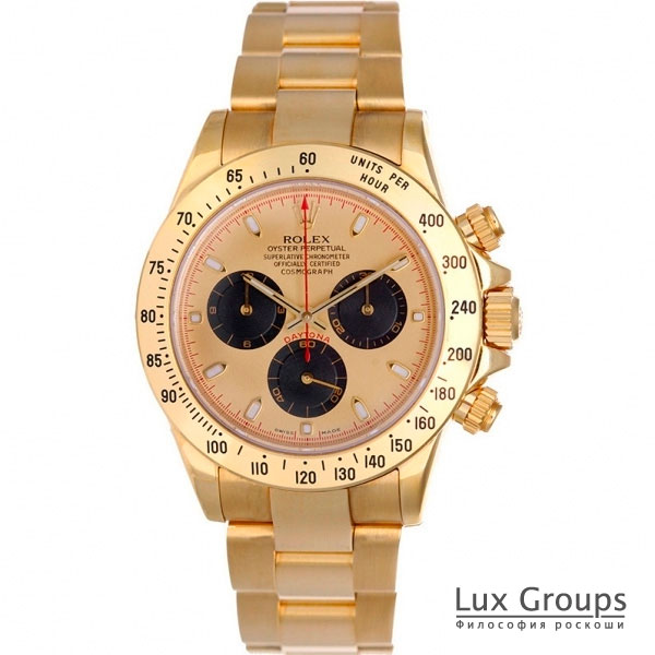 Rolex Oyster Perpetual Cosmograph Daytona — це оригінальний годинник від бренду Rolex референс 116528 створений з урахуванням кращих традицій годинникового мистецтва, у яких Тип калібру механіка з автопідзаводом, Діаметр, мм 40, Матеріал корпусу жовте золото, буде ідеальним вибором для тих, хто цінує точність, стиль та якість, підтверджену часом, стане практичним інструментом та важливим елементом вашого іміджу Rolex Oyster Perpetual Cosmograph Daytona мають Браслет жовте золото, Водонепроникність (м) 100, представлені в інтернет-магазині Luxgroups за найкращою ціною з можливістю купити в Україні. Кваліфікована консультація по моделі годинника Rolex Oyster Perpetual Cosmograph Daytona 116528.