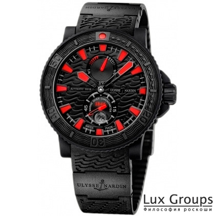 Торік компанія Ulysse Nardin порадувала шанувальників дайверських годинників розкішною моделлю Monaco 2010 Marine Diver, виконаною в чорно-синій гамі. Цього року колекцію поповнила не менш виразна новинка під назвою Marine Diver Black Sea. Як відомо, найкраще – ворог хорошого, тому більшість елементів дизайнери залишили без змін. Корпус діаметром 45, 8 мм з однонаправленим дайверським безелем, що обертається, і захищеною заводною головкою виконаний з нержавіючої сталі з матово-чорним покриттям. На чорному циферблаті з хвилеподібною структурою скелетонізовані стрілки, годинникові індекси, круглий стрілочний індикатор запасу ходу на 12 годинах, бічний секундний циферблат та апертура дати на 6 годинах. Не важко помітити, що, в принципі, змінився лише колір елементів на циферблаті – червоний. Модель, як і раніше, оснащена автоматичним механізмом UN-26 із запасом ходу 42 години та функціями індикації годин, хвилин, секунд, дати та запасу ходу. Модель поставляється на каучуковому ремінці з тисненням хвилі або браслеті з чорними керамічними вставками. Механізм: - UN-26, автопідзавод - 28 каменів - запас ходу 42 години Корпус: - нержавіюча сталь з покриттям з вулканізованої гуми - діаметр 45, 8 мм - сапфірове скло з обох боків корпусу - водонепроникність 200 м Ремінець/брак - браслет із нержавіючої сталі з керамічними вставками