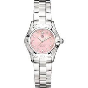 Tag Heuer Aquaracer Quartz Ladies 27mm (SS / Pink MOP-Diamonds / SS) — це оригінальний годинник від бренду Tag Heuer Aquaracer референс WAF141A.BA0813 створений з урахуванням кращих традицій годинникового мистецтва, у яких буде ідеальним вибором для тих, хто цінує точність, стиль та якість, підтверджену часом, стане практичним інструментом та важливим елементом вашого іміджу Tag Heuer Aquaracer Quartz Ladies 27mm (SS / Pink MOP-Diamonds / SS) мають представлені в інтернет-магазині Luxgroups за найкращою ціною з можливістю купити в Україні. Кваліфікована консультація по моделі годинника Tag Heuer Aquaracer Quartz Ladies 27mm (SS / Pink MOP-Diamonds / SS) WAF141A.BA0813.