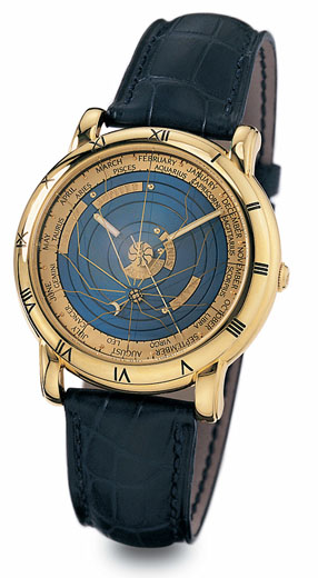 Простий хід цього чудового механізму поєднує геоцентричну модель всесвіту Птолемея, центром якої була Земля, і геліоцентричну модель Коперника з Сонцем в центрі. Це дозволяє визначати астрономічне становище планет стосовно як Сонця, і Землі. Місяць обертається довкола Землі. Вічний календар показує місяці та знаки зодіаку, які завершують свій оборот за 365.24 дні days.
