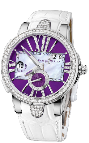 Механізм – автоматичний, Калібр UN-24. Корпус – нержавіюча сталь. Безель інкрустований білими діамантами. Циферблат - фіолетовий з перлинним білим, інкрустований білими діамантами. Запас ходу – 42 години. Ремінець - шкіра алігатора зі вставкою з нержавіючої сталі, застібка, що розкладається. Водонепроникність 50 м. Збільшена дата.
