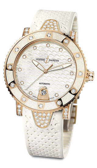 Ulysse Nardin Watch Lady Diver (RG Diamond Lugs / White / Rubber)