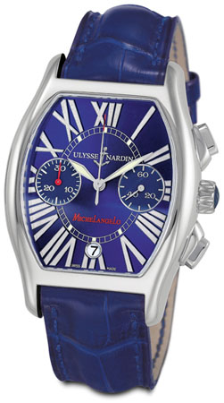 Ulysse Nardin Michelangelo Chronograph (SS / Blue / Roman / Leather)
