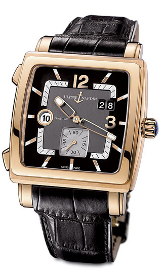 Ulysse Nardin Watch Quadrato Dual Time (RG / Black / Leather)