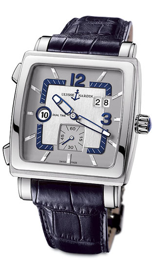Ulysse Nardin Watch Quadrato Dual Time (Steel / Silver / Leather)