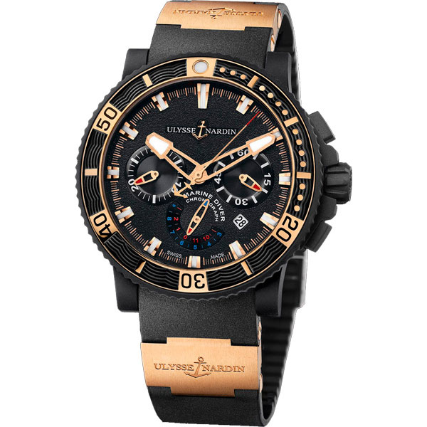 Мужній та стильний, новий хронограф швейцарської мануфактури Ulysse Nardin – Black Sea Chronograph, схожий на суворі морські глибини. Брутальний корпус годинника приховує дивовижну та інноваційну технологію, захищає складний механізм та підтримує небувалу точність ходу. Black Sea Сhronograph, неначе сам океан, у глибинах якого приховано безліч таємниць та загадок. Корпус, діаметром 45,8 мм, виконаний із спеціально створеної нержавіючої сталі рожевого золота та покритий шаром матово-чорного каучуку, що пройшов складний процес вулканізації. Технологія, при якій годинникам не страшні ні глибина, ні тиск. Надійний та витривалий, під водою, Black Sea Chronograph, здатний витримувати навантаження у 20 атмосфер. Він створений для шанувальників водної стихії, у якому живе нестримна пристрасть до ризику. Абсолютна точність ходу забезпечує їхньому власнику безпеку як у воді, так і на суші. Стрілку хронографа прикрашає декоративний якір – символ годинникової мануфактури Ulysse Nardin. Мітки на циферблаті, годинна та хвилинна стрілка покриті білими люмінесцентним складом "Superluminova" для кращої індикації в будь-яких умовах: чи то у воді, чи на суші. Додаткові лічильники секунд та хвилин хронографа лаконічно розмістилися на циферблаті годинника. Індикатор секундної стрілки розташований у позиції «3 години», тоді як лічильник, що фіксує 30-хвилинні проміжки часу, знаходиться на позначці «9 годин». Дата розташована в положенні «4 години», а додаткові лічильники в положенні «6 годин» фіксують 12-годинні проміжки часу стрілками, пофарбованими в червоний і синій колір. Ні на секунду не забуваючи про функціональність брутального і одночасно елегантного годинника, їх творці подбали про монохромний дизайн Black Sea Chronograph, виділивши маленькі стрілки-індикатори блакитними та червоними відмітками, для більшої зручності сприйняття показників. Безель, що обертається в один бік і заводна головка, що фіксується на різьбленні, покриті шаром вулканізованого каучуку, що забезпечує максимальну водонепроникність - до 200 метрів і додає функціональності: при регулюванні показників і виставленні лічильників рука не зісковзує з датчиків. Удосконалений корпус повністю захищає годинниковий механізм від зовнішніх впливів, за його роботою можна спостерігати через прозору задню кришку, виготовлену з сапфірового скла. Керамічні вставки на застібці та браслеті у поєднанні з каучуковим ременем забезпечують додаткову міцність та еластичність при носінні. Хронограф від Ulysse Nardin – справжній союзник свого власника, створений для чоловіка, всередині якого вирує стихія.