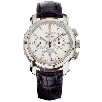 Vacheron Constantin Malte Perpetual Calendar Chronograph (платина / білий / шкіра)