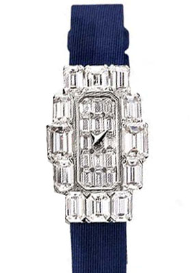 Корпус білого золота 27.5 x 37.15 мм. Циферблат – діаманти. Ручний завод. Запас ходу близько 35 години.