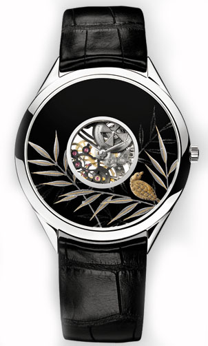 Чорний лак, візерунок «Бамбук та Горобець» з обох боків, виконаний у техніці Maki-e. Японський символ сили та довголіття.