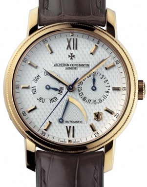 У кожну модель Vacheron Constantin привносить особливу родзинку, яка приваблює колекціонерів дорогого та елітного годинника своєю унікальністю та дивує новизною та дизайном. Швейцарський наручний годинник Jubilee 1755, випущений лімітованою серією в кількості 501 екземпляра, виготовлений з жовтого золота в 18 карат, калібр 2475. З-за того, що ця серія лімітована, годинник купити непросто. Циферблат білий-сріблястий, закритий сапфіровим склом. Коричневий ремінь зі шкіри алігатора та класичною застібкою із жовтого золота відмінно облягає зап'ястя. Хвилинна та секундна стрілки виготовлені із жовтого золота. Діаметр годинника - 40 мм. Водонепроникність – 30 м. Запас ходу – 42 години. У функції годинника входять: годинник, хвилина, секунда, запас ходу годинника в положенні на 6 годин, дата в положенні на 3 години, день тижня в положенні на 9 годин.