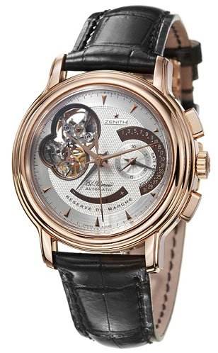 Калібр: El Primero 4039, запас ходу – 55 годин. Сертифікований хронограф COSC. Годинник, хвилина, секунда, індикатор резерву ходу, хронограф, індикатор дати. Прозора сапфірова задня кришка. Подвійне сапфірове скло, стійке до подряпин. Корпус із золота 18К рожевого кольору. Ремінець із крокодилової шкіри. Розмір корпусу: діаметр 40 мм, товщина 14 мм.