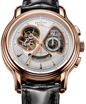 Калібр: El Primero 4039, запас ходу – 55 годин. Сертифікований хронограф COSC. Годинник, хвилина, секунда, індикатор резерву ходу, хронограф, вікно дати. Прозора сапфірова задня кришка. Подвійне сапфірове скло, стійке до подряпин. Корпус із золота 18К рожевого кольору. Ремінець із крокодилової шкіри. Розміри корпуса: діаметр 45мм, товщина 14мм.
