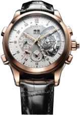 Функції будильник, другий час, дата, індикатор заводу будильника, індикатор запасу ходу, хвилинний репетир, хвилини, секунди, хронограф, годинник