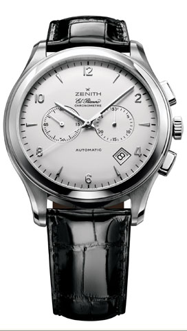 Швейцарський хронограф, автоматичний, сертифікований механізм COSC. Сталевий корпус 44мм, товщина 14мм. Срібний циферблат Чорний ремінець, водонепроникність 30м.