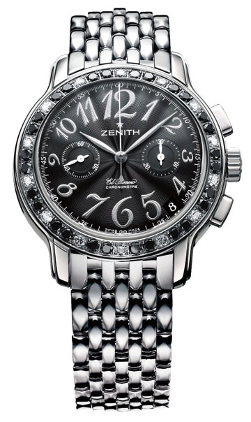 Glam Rock. Калібр: El Primero 4002, 31 камінь, складається з 326 частин, запас ходу – 55 годин. Сертифікований хронограф COSC. Безель прикрашений 12 білими і 24 чорними діамантами в 2,5 карат. Сапфірове скло, стійке до подряпин. Годинник, хвилина, секунда, хвилинний лічильник, секундомір, вікно дати. Задня кришка із прозорим сапфіровим вікном. Корпус із високоякісного сталевого сплаву 316L з високими антикорозійними властивостями. Ремінець cnfkmyjq. Розміри корпусу: діаметр 375 мм, товщина 135 мм.