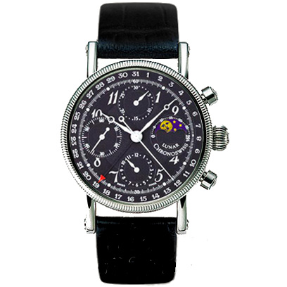 Функции дата, индикатор фаз луны, минуты, секунды, хронограф, часы