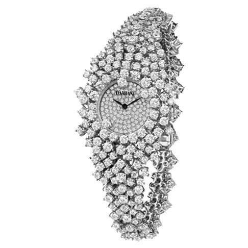 Корпус и браслет: 18-каратное белое золото, инкрустация 267 бриллиантами двух размеров, заводная головка из 18-каратного белого золота с бриллиантом.