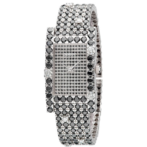 Циферблат: 18-каратное белое золото, инкрустирован 176 черными алмазами бриллиантовой огранки.