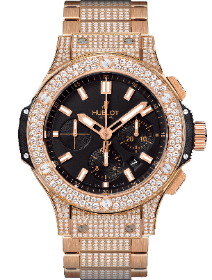 Механизм - автоматический, Калибр HUB 4100. Корпус - розовое золото 18к., инкрустирован белыми бриллиантами. Циферблат - черный. Запас хода - 42 часа. Браслет из розового золота 18к, инкрустирован белыми бриллиантами.