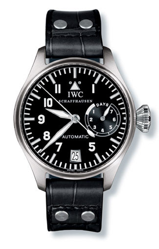 Серия Pilot's выполнена в стиле авиаторских часов 40-х годов с массивным корпусом и четким контрастным циферблатом. Эти часы представляют собой сочетание надежности и элегантности. На циферблате в зоне 6 часов расположено окошечко даты, а в зоне 3 часов - индикатор запаса хода. Часы Big Pilot`s в платиновом корпусе были выпущены ограниченной серией в 500 моделей. Частота 21 600 полуколебаний в час. 42 камня.
