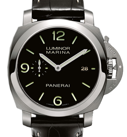 Компания OFFICINE PANERAI выпустила модель Luminor 1950 Marina 3 Days Automatic в корпусе 44 мм, чтобы открыть новую линейку моделей, которые изготавливается исключительно на мануфактуре Officine Panerai. Модель LUMINOR 1950 3 DAYS сохранила эстетику коллекции Luminor 1950, вдохновленную историей Officine Panerai, но с обновленным, улучшенным дизайном и большим вниманием к деталям. Его наиболее важной характеристикой и гордостью является механизм калибра P.9000 с 3 дневным запасом хода, которые для Officine Panerai, является прародителем P.2000 серии и берет свое название от года, в котором был спроектирован, полностью разработан и создан в производстве в Невшателе на мануфактуре. Черный циферблат сэндвич (образованной на две наложенных пластины, верхний из которых имеет перфорацию и нижний из которых покрыт люминесцентным материалом) из Luminor 1950 3 дней имеет окошко даты в положении на 3 часа, с традиционным маленьким циферблатом секунд в симметричном положении. Ремешок из кожи крокодила прошит вручную с классической застежкой из стали. Водозащита 300 метров.