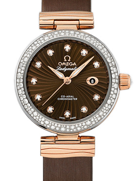 Omega De Ville Ladymatic Steel - red gold on brown leather strap - Diamond 2013