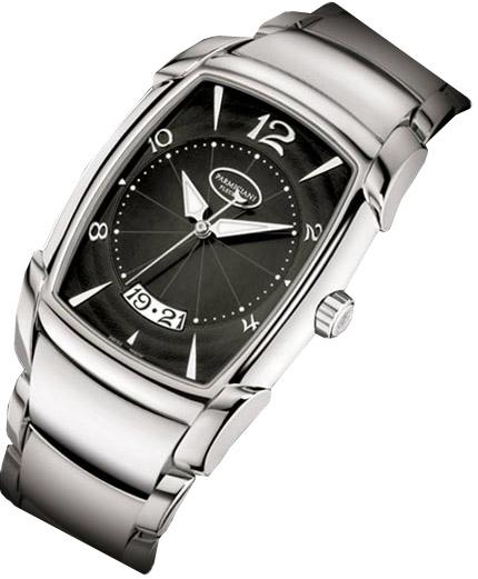Мужские механические часы с автоподзаводом. Корпус - 46,6 x 34мм., из нержавеющей стали. Циферблат - чёрный. Браслет - стальной, матовый.