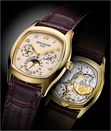 Новая модель Perpetual Calendar Automatic Ref. 5940 от швейцарского часового бренда Patek Philippe, официально представленная на международной выставке Baselworld-2012, имеет корпус бочкообразной формы, изготовленный из 18-каратного желтого золота, длиной 44,6 мм, шириной 37 мм, водонепроницаемый до 30 метров, а также с бриллиантом, традиционно инкрустированным на 6 часах. Сапфировое стекло установлено на передней стороне корпуса и на его задней крышке. Циферблат цвета слоновой кости, с накладными золотыми арабскими цифрами и часовыми индексами, а также с золотыми стрелками.
