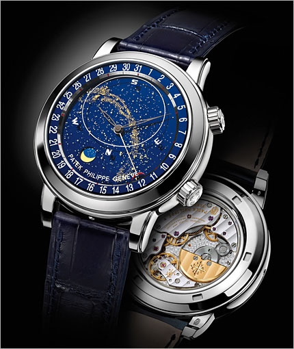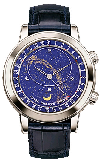Функции часов, далеко не напоминают стандартный набор, есть основные показатели часов, минут, даты, а также индикатор солнечного времени, время прохождения Луны и Сириуса (одна из ближайших к Земле звезд) через меридиан, указатель лунного времени, карта звездного неба, фаза и орбита Луны. Дату показывает центральная стрелка с красным наконечником в форме полумесяца. Карта звездного неба на циферблате часов от Patek Philippe воспроизводит точное положение звезд над Женевой, а скелетонизированные золотые стрелки двигаются, указывая на цифры, нанесенные рубленым шрифтом. Основная идея заключается в трех прозрачных дисках на циферблате, вращающихся с разной скоростью. Первый прозрачный диск — это изображение звездного неба, второй диск определяет орбиту Луны, и третий — диск фазы Луны.