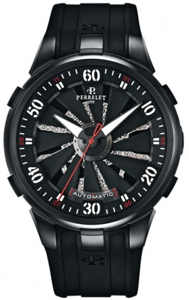 Выпустить модель со столько модным в последнее время символом смерти – черепом – считает своим долгом чуть ли не каждый часовой бренд. Следуя тренду, компания Perrelet представила новую интерпретацию своей знаменитой «турбины», под 12 вращающимися лопастями которой просматривается выложенное бриллиантами изображение черепа. Можно сказать, что при создании мастера компании превзошли сами себя. Зрелище сверкающих под черными лопастями драгоценных камней завораживает, создавая впечатление, словно череп сияет сквозь мельтешение черных теней.