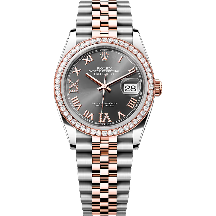 Характеристики Rolex Datejust 36 Steel Everose Diamonds Slate Diamond-set dial Jubilee
