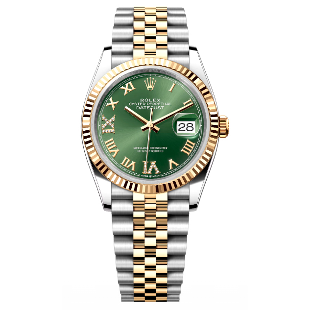 Характеристики Rolex Datejust 36 Steel YG Olive-green Diamond-set Dial Jubilee