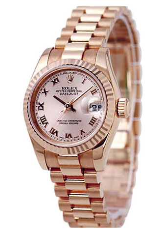 Женская модель Datejust 31mm в розовом золоте, очень элегантна. Циферблат розовый с накладными римскими цифрами из розового золота. Механизм с автоподзаводом, запас хода 42 часа. Браслет President из розового золота.