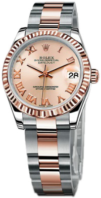 Корпус из нержавеющей стали и 18-каратного розового золота (диаметр 31мм, 11мм толщиной) с завинчивающейся заводной головкой Triplock. Oyster браслет со раскладной застежкой, розовый циферблат с римскими цифрами. Механизм Caliber 3130 с автоматическим заводом. Oyster Perpetual сертифицированный COSC. Сапфировое стекло. Водонепроницаемость до 100 метров (330 футов).