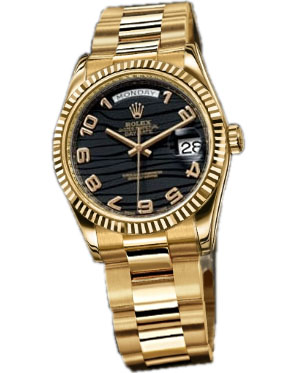 Характеристики Rolex watches Day-Date 36mm Oyster Yellow Gold - Fluted Bezel black dial Arabic