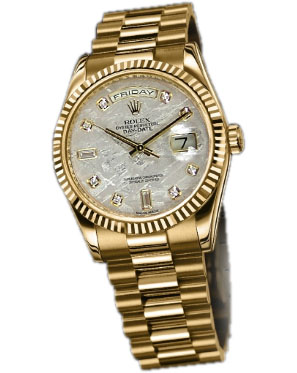 Характеристики Rolex watches Day-Date 36mm President Yellow Gold - Fluted Bezel meteorite dial