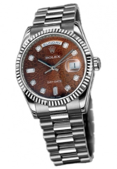 Rolex Day-Date 36 mm President White Gold - Fluted Bezel — это оригинальные часы от бренда Rolex Day-Date референс 118239 Havana brown dial созданные с учетом лучших традиций часового искусства, у которых Тип калибра механика с автоподзаводом, Диаметр, мм 36, Материал корпуса белое золото, будет идеальным выбором для тех, кто ценит точность, стиль и качество, подтвержденное временем, станет практичным инструментом и важным элементом вашего имиджа.Rolex Day-Date 36 mm President White Gold - Fluted Bezel имеют Браслет Браслет золотой, Водонепроницаемость (м) 30, представлены в интернет-магазине Luxgroups по лучшей цене с возможностью купить в Украине. Квалифицированная консультация по модели часов Rolex Day-Date 36 mm President White Gold - Fluted Bezel 118239 Havana brown dial.