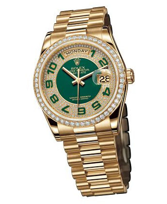 Rolex watches Day-Date President Yellow Gold - Diamond Bezel — это оригинальные часы от бренда Rolex Day-Date референс 118348 Green Dial созданные с учетом лучших традиций часового искусства, у которых Тип калибра механика с автоподзаводом, Диаметр, мм 36, Материал корпуса желтое золото, будет идеальным выбором для тех, кто ценит точность, стиль и качество, подтвержденное временем, станет практичным инструментом и важным элементом вашего имиджа.Rolex watches Day-Date President Yellow Gold - Diamond Bezel имеют представлены в интернет-магазине Luxgroups по лучшей цене с возможностью купить в Украине. Квалифицированная консультация по модели часов Rolex watches Day-Date President Yellow Gold - Diamond Bezel 118348 Green Dial.