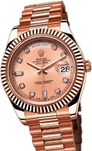 Rolex Day-Date II President Pink Gold - Fluted Bezel Champagne Diamonds Dial — это оригинальные часы от бренда Rolex Day-Date референс 218235 Pink Diamonds созданные с учетом лучших традиций часового искусства, у которых Тип калибра механика с автоподзаводом, Диаметр, мм 41, Материал корпуса розовое золото, будет идеальным выбором для тех, кто ценит точность, стиль и качество, подтвержденное временем, станет практичным инструментом и важным элементом вашего имиджа.Rolex Day-Date II President Pink Gold - Fluted Bezel Champagne Diamonds Dial имеют Браслет Браслет золотой, Водонепроницаемость (м) 100, представлены в интернет-магазине Luxgroups по лучшей цене с возможностью купить в Украине. Квалифицированная консультация по модели часов Rolex Day-Date II President Pink Gold - Fluted Bezel Champagne Diamonds Dial 218235 Pink Diamonds.