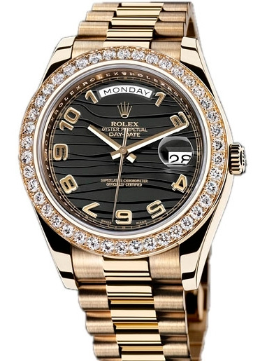 Характеристики Rolex Day-Date II President Yellow Gold - Diamond Bezel Black Wave dial