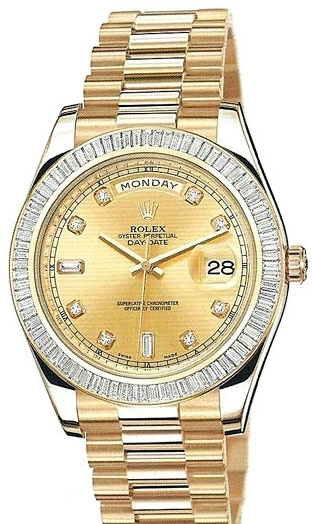 Характеристики Rolex Day-Date II President Yellow Gold - Diamond Baguette Bezel champagne diamond dial