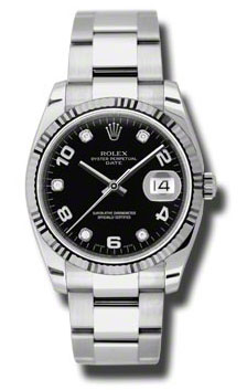 Rolex watches Date 34mm Fluted Bezel - Oyster Bracelet — это оригинальные часы от бренда Rolex Oyster Perpetual референс 115234 black dial five diamond созданные с учетом лучших традиций часового искусства, у которых Тип калибра механика с автоподзаводом, Диаметр, мм 34, Материал корпуса Комбинированный, будет идеальным выбором для тех, кто ценит точность, стиль и качество, подтвержденное временем, станет практичным инструментом и важным элементом вашего имиджа.Rolex watches Date 34mm Fluted Bezel - Oyster Bracelet имеют представлены в интернет-магазине Luxgroups по лучшей цене с возможностью купить в Украине. Квалифицированная консультация по модели часов Rolex watches Date 34mm Fluted Bezel - Oyster Bracelet 115234 black dial five diamond.