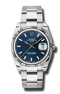 Rolex watches Date 34mm Fluted Bezel - Oyster Bracelet — это оригинальные часы от бренда Rolex Oyster Perpetual референс 115234 blue dial index созданные с учетом лучших традиций часового искусства, у которых Тип калибра механика с автоподзаводом, Диаметр, мм 34, Материал корпуса Комбинированный, будет идеальным выбором для тех, кто ценит точность, стиль и качество, подтвержденное временем, станет практичным инструментом и важным элементом вашего имиджа.Rolex watches Date 34mm Fluted Bezel - Oyster Bracelet имеют представлены в интернет-магазине Luxgroups по лучшей цене с возможностью купить в Украине. Квалифицированная консультация по модели часов Rolex watches Date 34mm Fluted Bezel - Oyster Bracelet 115234 blue dial index.