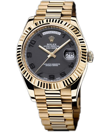 Rolex Day-Date II President Yellow Gold - Fluted Bezel Black Dial