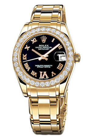 На безеле из золота сияют 34 бриллианта классической огранки, изящно вставленных в оправы из 18-каратного белого золота. Циферблат - черный с бриллиантами на римской цифре 6. Прослеживается яркий, утонченный и околдовывающий стиль Datejust Special Edition.