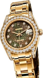 Высокое мастерство и часовое искусство. Здесь часы Datejust 34mm Special Edition Yellow Gold 32 Diamond Bezel 81158 – воплощение классической женственности – представлены в исполнении из 18-каратного желтого золота. С самого первого взгляда 18-каратное желтое золото часов Datejust Special Edition задает тон: оно оказывает неотразимое воздействие и придает часам особую индивидуальность. С помощью специальных резцов ювелир, словно скульптор, вырезает в металле каст (оправу) для закрепки бриллианта. Когда каст подготовлен, он ловким движением руки вставляет в него камень. Каждый камень тщательно позиционируется относительно других, после чего он надежно закрепляется в золотой или платиновой оправе обжатием металла по периметру. На безеле из золота сияют 34 бриллианта классической огранки, на корпусе 28 бриллиантов, которые изящно вставленных в оправы из 18-каратного белого золота, Циферблат - темный перламутр с фирменным рисунком Jubilee с 10 белыми бриллиантами вместо меток. Прослеживается яркий, утонченный и околдовывающий стиль Datejust Special Edition. Хронометр - Сертификация COSC. Механизм с автоподзаводом, Caliber 2235 на 31 камне с запасом хода 42 часа. Окошко даты с лупой находится в положении 3 часов. Браслет - Pearlmaster из желтого золота 750 пробы с застежкой Crownclasp.