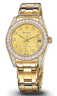 Высокое мастерство и часовое искусство. Здесь часы Datejust 34mm Special Edition Yellow Gold 32 Diamond Bezel 81158 – воплощение классической женственности – представлены в исполнении из 18-каратного желтого золота. С самого первого взгляда 18-каратное желтое золото часов Datejust Special Edition задает тон: оно оказывает неотразимое воздействие и придает часам особую индивидуальность. С помощью специальных резцов ювелир, словно скульптор, вырезает в металле каст (оправу) для закрепки бриллианта. Когда каст подготовлен, он ловким движением руки вставляет в него камень. Каждый камень тщательно позиционируется относительно других, после чего он надежно закрепляется в золотой или платиновой оправе обжатием металла по периметру. На безеле из золота сияют 34 бриллианта классической огранки, на корпусе 28 бриллиантов, которые изящно вставленных в оправы из 18-каратного белого золота, Циферблат - цвета шампанского с фирменным рисунком Jubilee с 10 белыми бриллиантами вместо меток. Прослеживается яркий, утонченный и околдовывающий стиль Datejust Special Edition. Хронометр - Сертификация COSC. Механизм с автоподзаводом, Caliber 2235 на 31 камне с запасом хода 42 часа. Окошко даты с лупой находится в положении 3 часов. Браслет - Pearlmaster из желтого золота 750 пробы с застежкой Crownclasp.